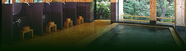 大きな硝子窓には蛇骨渓谷の四季が映ります。浴室の床は木の温もりが やさしい檜を敷きつめました。
